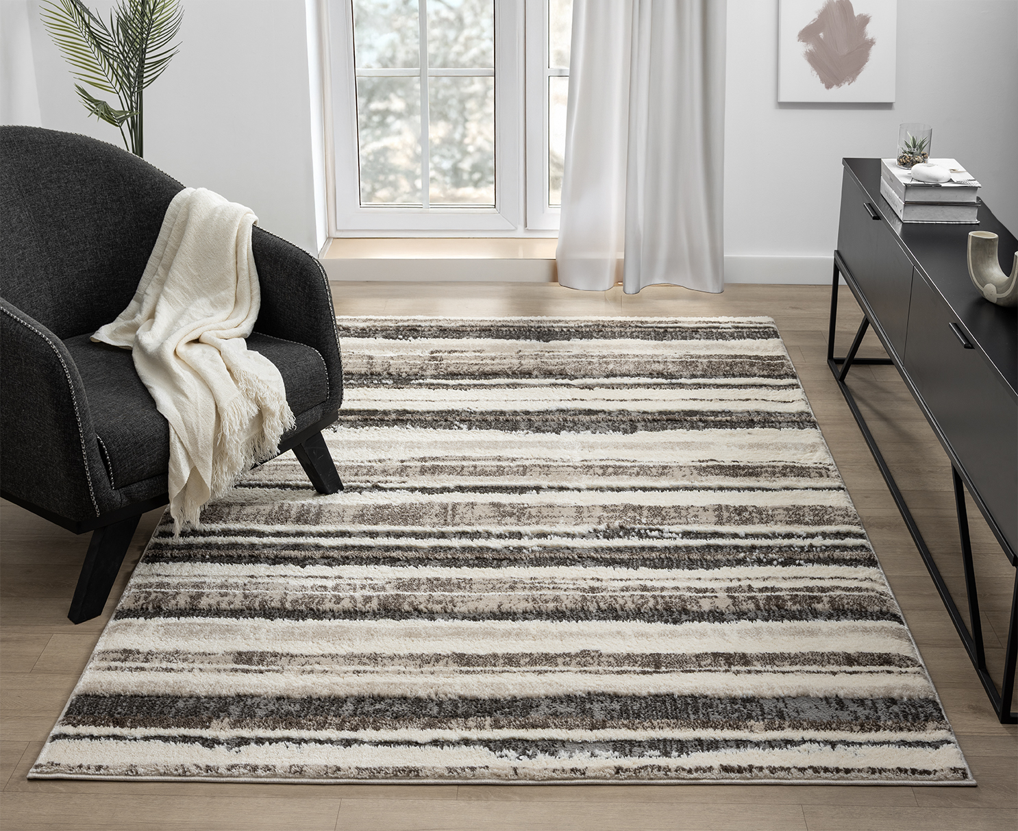 Elevate your space with the Eleanor Modern Rug, featuring a luxurious 20mm embossed pile and a contemporary abstract design inspired by marble and linear patterns. Crafted from a durable polypropylene and polyester blend with jute backing, it’s soft underfoot, easy to maintain, and perfect for high-traffic indoor areas.