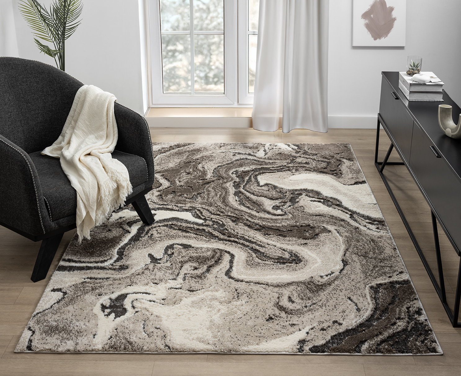 Elevate your space with the Eleanor Modern Rug, featuring a luxurious 20mm embossed pile and a contemporary abstract design inspired by marble and linear patterns. Crafted from a durable polypropylene and polyester blend with jute backing, it’s soft underfoot, easy to maintain, and perfect for high-traffic indoor areas.